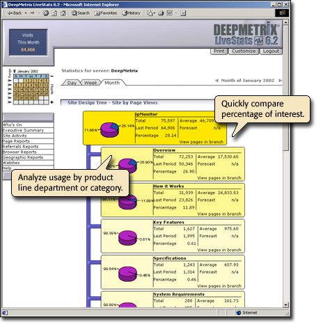Using the Site Design tree you might create a group for company products and a group for company services, then compare each branch to determine the level of interest in products versus services.