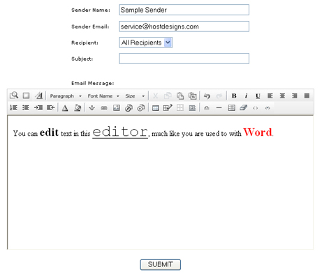 We've developed an email newsletter management tool that you will want to integrate with your site. This system allows customers to signup on your website. Once they signup, they receive an email in which they confirm the subscription and authorize you to send them email. (This is for your protection.)